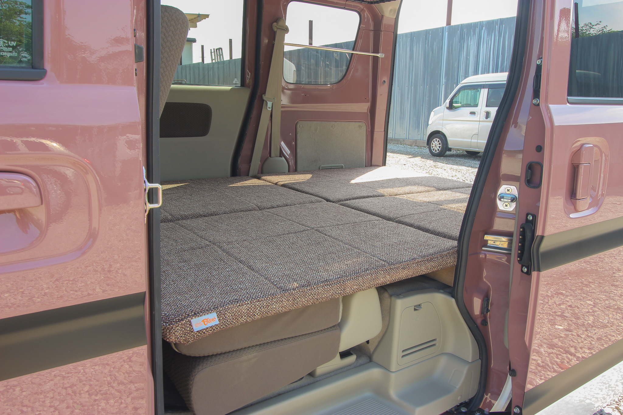 2台とも後部座席から荷室までは、ブローオリジナルのフラットベッドキットを載せ、フルフラットにしています。